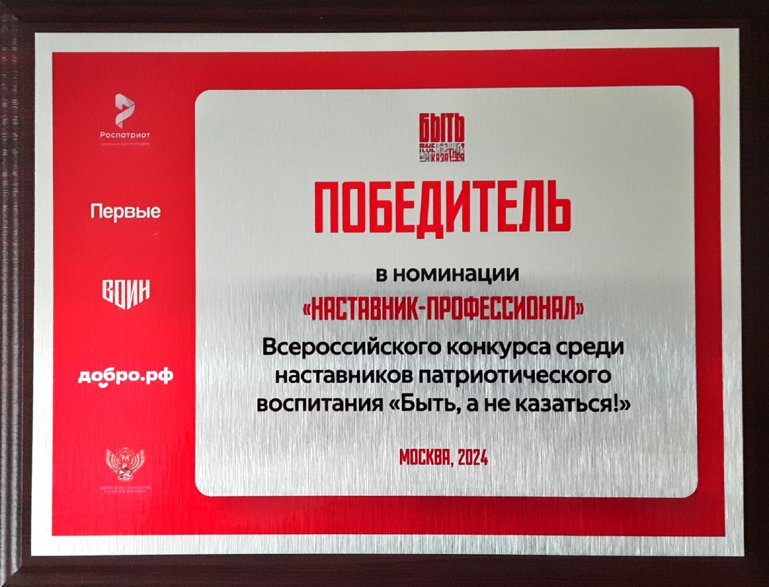 Победитель Всероссийского конкурса среди наставников патриотического воспитания «Быть, а не казаться!», в номинации "Наставник-профессионал";
